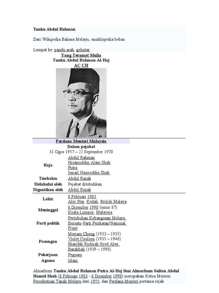 Tunku Abdul Rahman Putra Al-Haj ibni Almarhum Sultan Abdul Hamid Shah Umur. Muat turun halaman 1-10 di anyflip. August 8 2021.